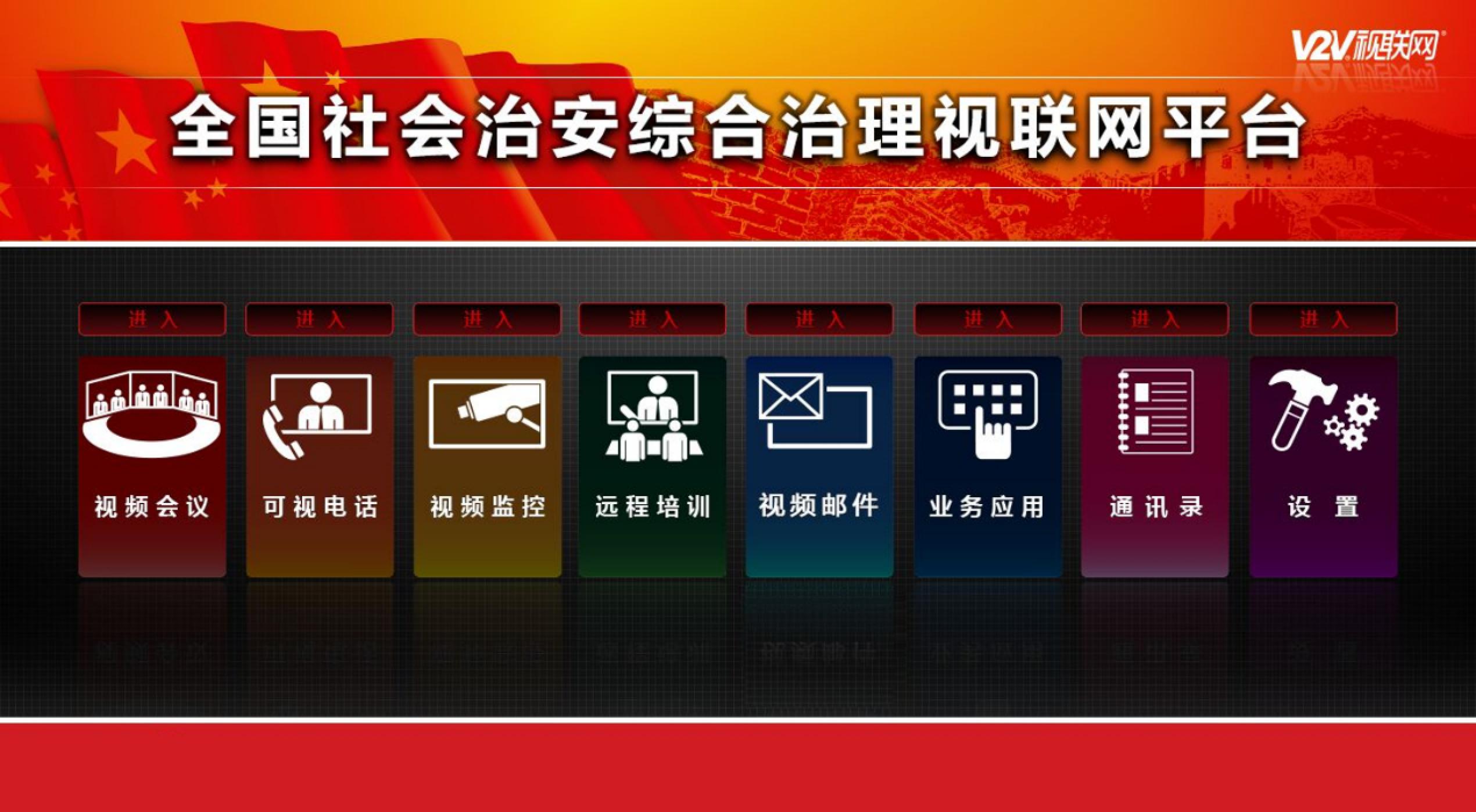 綜治視聯(lián)網(wǎng)是運用“V2V視聯(lián)網(wǎng)”、“統(tǒng)一視頻”、“視頻云計算”等多項技術,采用多項專利技術,針對全新建設思路提出的全新的視頻通訊平臺。覆蓋全國的視頻會議的基本功能實現(xiàn);全高清、全兼容的視頻通訊系統(tǒng);可以與現(xiàn)有的監(jiān)控、會議系統(tǒng)實現(xiàn)互聯(lián)互通;與國家、其他省市視聯(lián)網(wǎng)平臺互聯(lián)互通;實現(xiàn)一個平臺下實現(xiàn)多功能的特性,節(jié)省開支;實現(xiàn)可成長、可擴充的應用模式,支持“橫到邊、縱到底”的擴容模式。