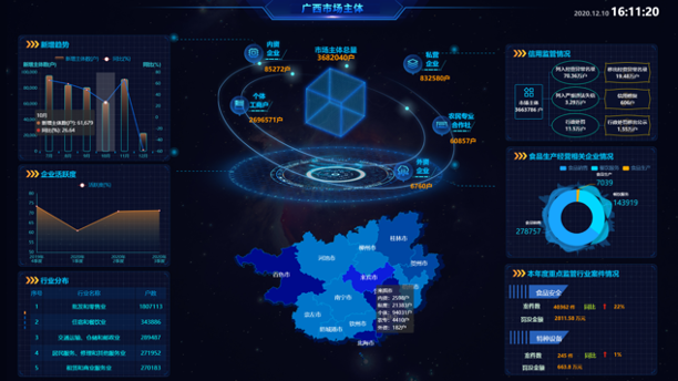 廣西壯族自治區(qū)市場監(jiān)督管理局通過建設廣西市場監(jiān)管信息系統(tǒng)實現(xiàn)政務服務、綜合管理、市場準入、市場監(jiān)管、執(zhí)法辦案、質量基礎等六大核心業(yè)務領域數(shù)據標準化歸集處理和共享,為廣西智能化市場監(jiān)管提供信息技術支撐。