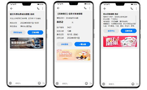 將通知信息通過卡片方式呈現(xiàn),重要信息進行強化顯示,給用戶提供更好的閱讀體驗,同時提供各類點擊按鈕,能夠直接進入指定的活動頁面或者app等,實現(xiàn)營銷轉(zhuǎn)化。