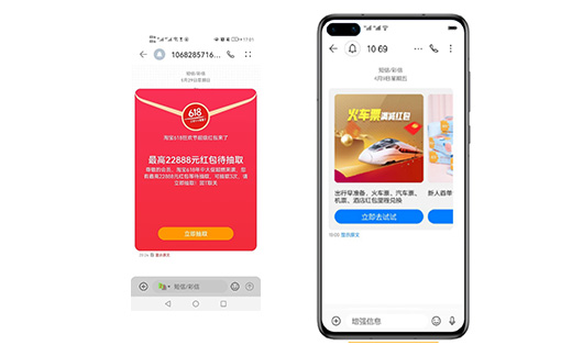 智能消息是通過手機終端信息增強技術(shù),將傳統(tǒng)文本短信無縫升級為可交互的富媒體信息,目前智能消息可以適配的手機品牌主要有華為、小米、oppo、vivo等,支持智能消息的機型直接顯示為智能消息(右圖),不支持智能消息的機型直接顯示為文本短信(左圖)